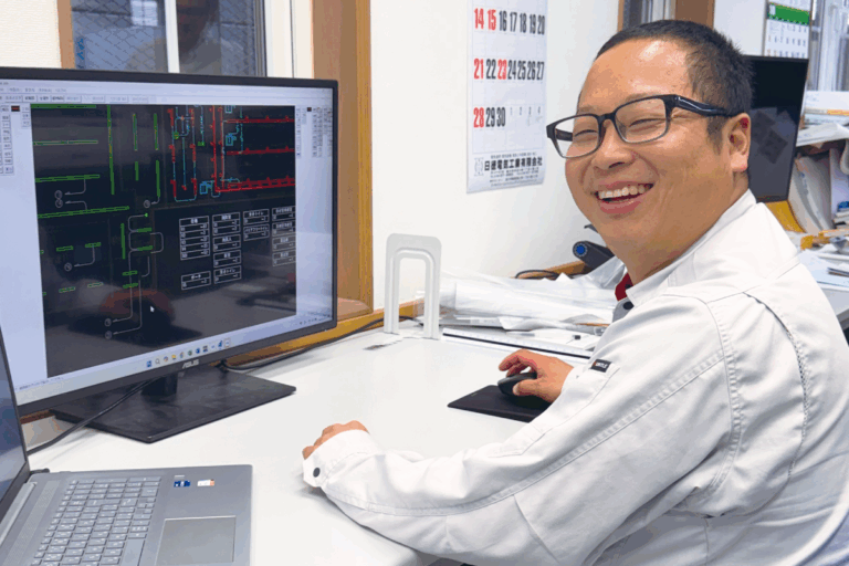 主に、現場での管理やメンテナンスが中心になります。また図面の管理や資料の整理、現場の指導なども任せてもらっています。今は管理の仕事をやりながら、図面の作成や運用の知識を勉強しています。やはり現場はスピードが求められるので、工程管理や、どうすれば効率よく動けるかを意識しますね。