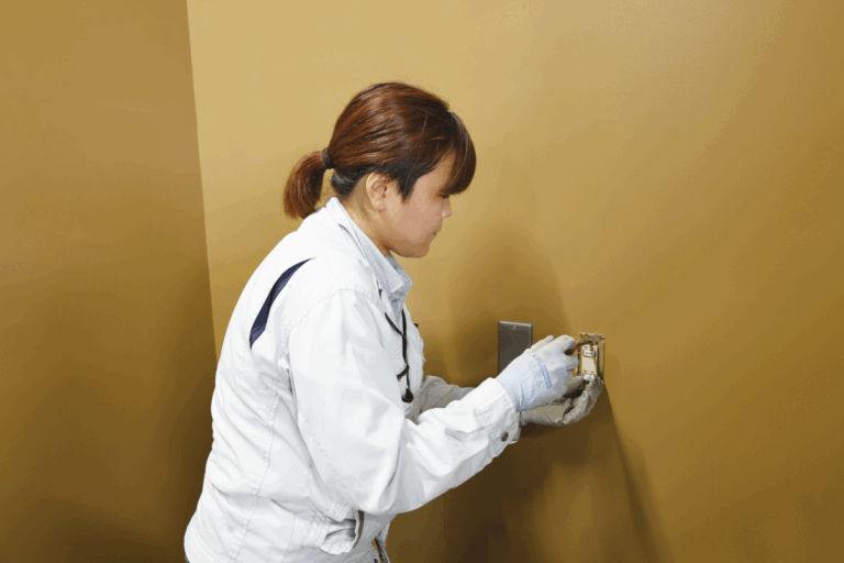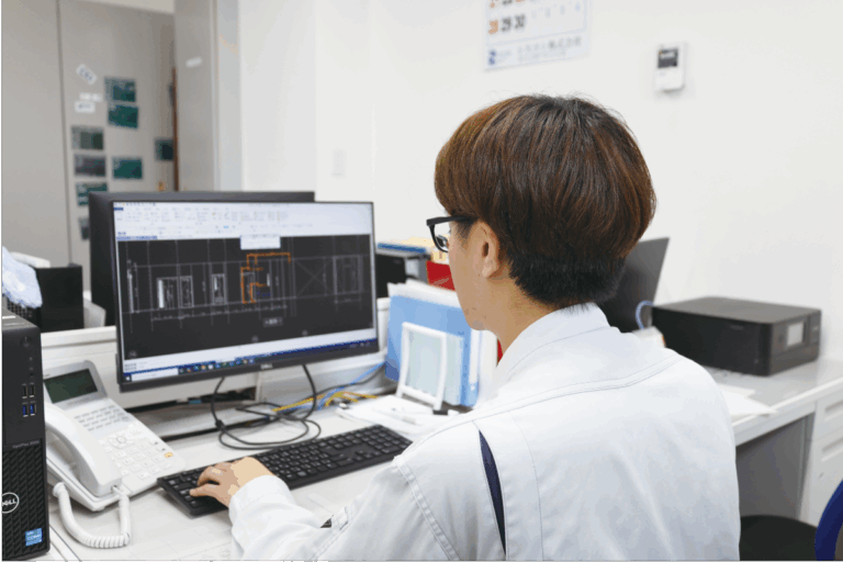 私は今、建物の中の電気設備の新築や改修の仕事をしています。お客さんや業者さんとのやり取りや、施工の準備など代理人としての業務を任せてもらっていて、コミュニケーション力を磨きながら少しずつできることを増やしているところです。上司や先輩方も年代が離れていても優しく教えてくださるので、とても安心して学べる環境ですね。
