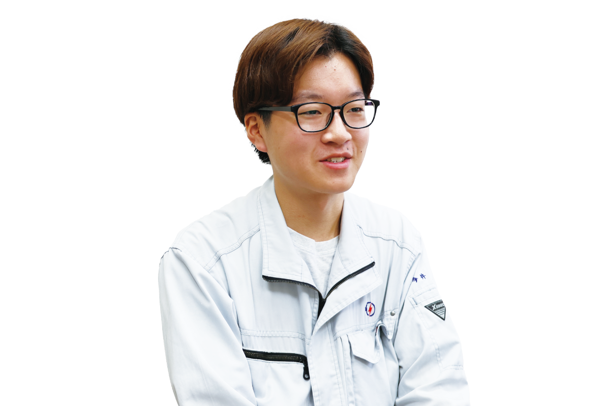 仕事内容は電柱や道路照明、受電設備の設置、防球ネット工事やトンネルの仮設工事など幅広く担当しています。最近は現場代理人として管理を任される機会も増え、工事監督員との打ち合わせや現場調査を行いながら学んでいます。職場はコミュニケーションが取りやすく、移動中や休憩中も笑談できるような和やかな雰囲気です。多様な現場で知識や経験を積み重ね、成長が成果につながった時に大きなやりがいを感じます。今後は資格取得を目指し、さらに会社に貢献できるよう努力していきたいです。